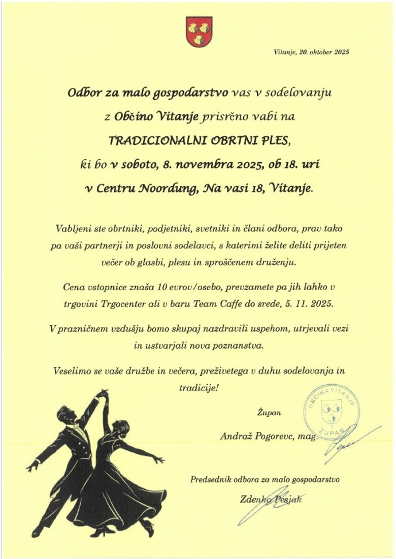 Vljudno vabljeni na tradicionalni obrtni ples vsi podjetniki in obrtniki s sedežem v občini Vitanje.