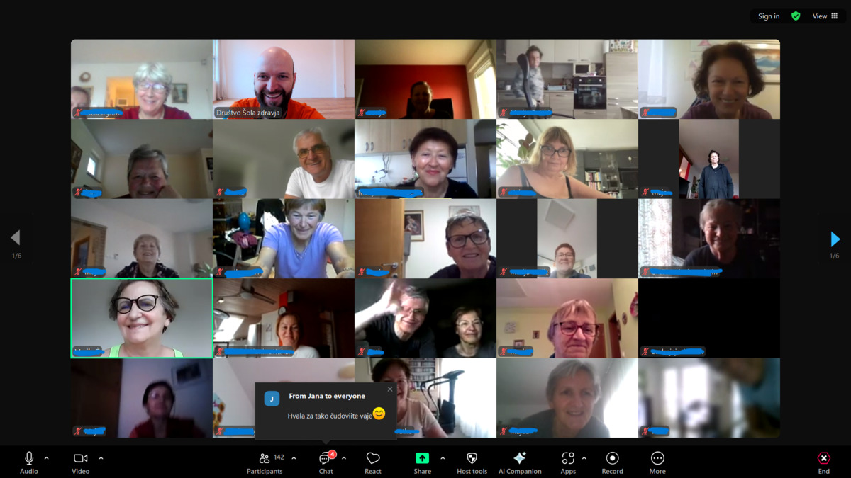 V prvih dveh mesecih leta 2026 Društvo Šola zdravja podarja brezplačno jutranje razgibavanje, ki bo potekalo preko platforme Zoom. Vadba bo na voljo od 5. januarja do 27. februarja, vsak delovni dan od 8. do 9. ure.